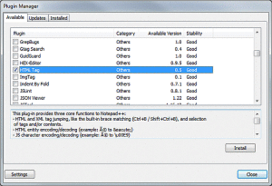 HTML Tag Plugin on Notepad++ Plugin Manager